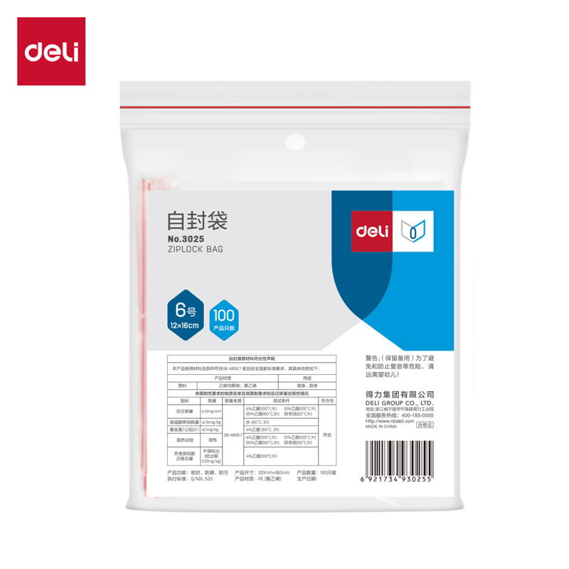得力3027自封袋(透明)-8号(100个/包)230x170mm0.04mm