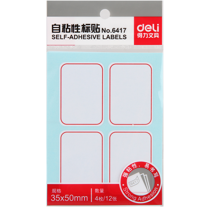 得力6417自粘性标贴(红色带框)(35*50mm)(本)