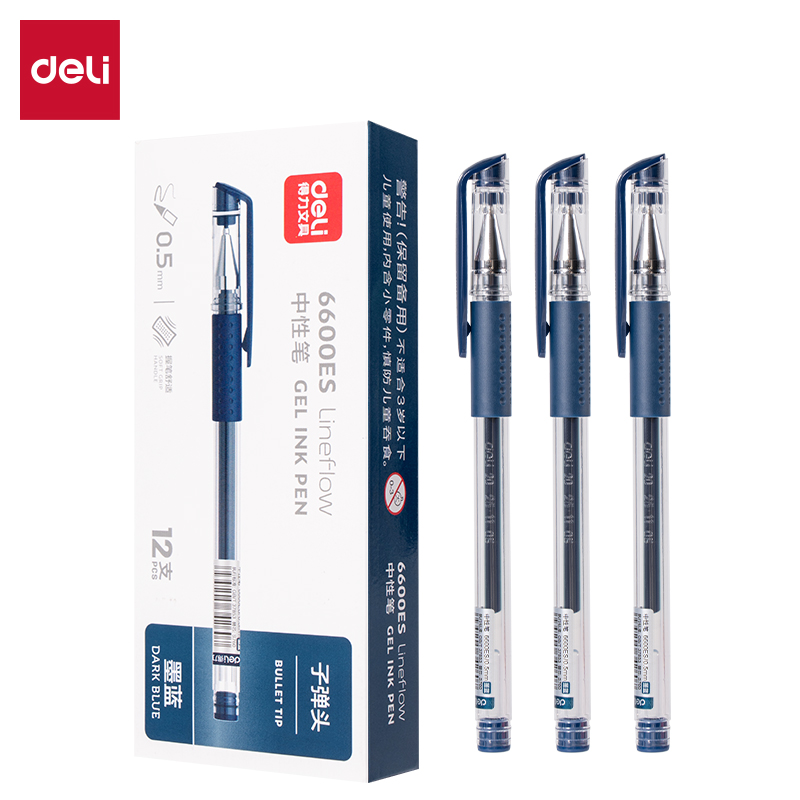 得力6600ES按帽中性笔0.5mm子弹头(墨蓝)(支)