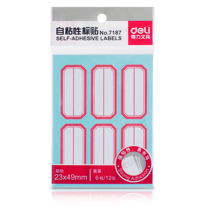 得力7187自粘性标贴(红色分栏)(23*49mm)(本)