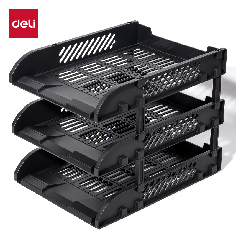 得力文件座三层塑料可拆卸文件框A4资料收纳盒学生书本试卷桌面办公整理分类文件盘书架