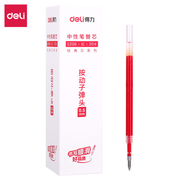 得力S206中性笔替芯0.5mm按动子弹头(红)