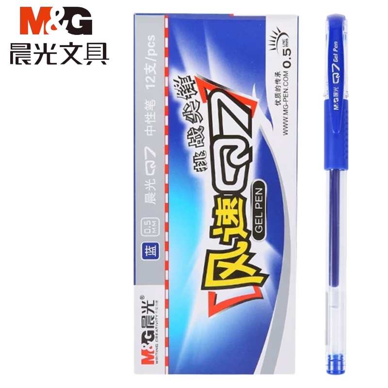 晨光Q7办公按帽中性笔0.5mm子弹头(蓝)(支)