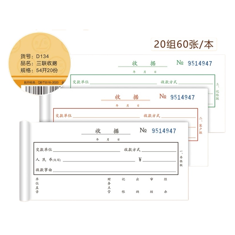 青联D系列54K单栏式收款收据通用二联三联单带复写纸手写单栏收款