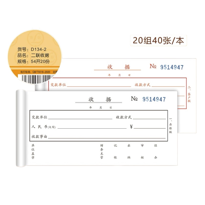 青联D系列54K单栏式收款收据通用二联三联单带复写纸手写单栏收款