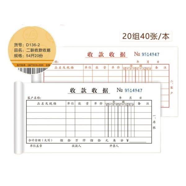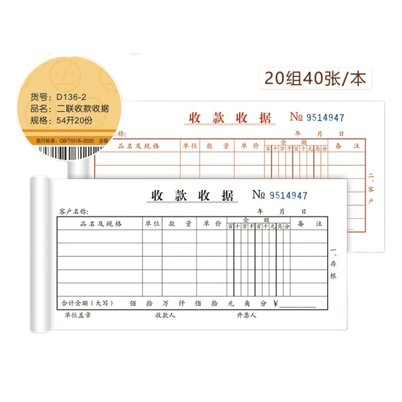 青联D系列54K单栏式收款收据通用二联三联单带复写纸手写单栏收款